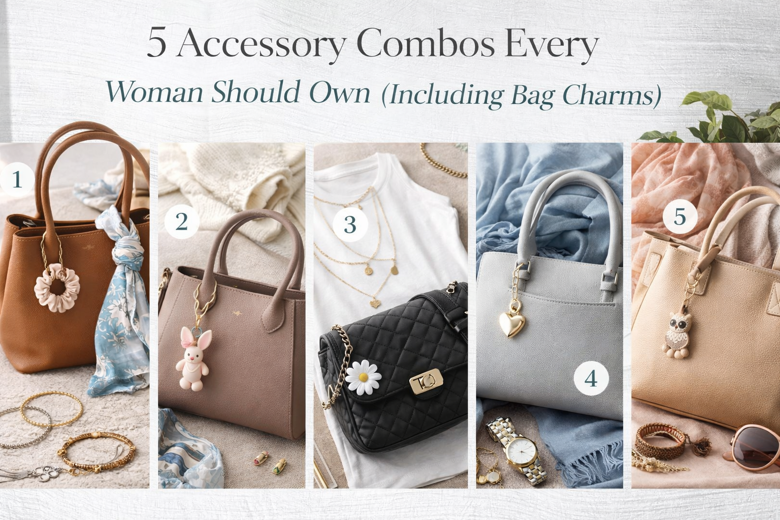 If you would like some suggestions to start your comprehensive accessory collection, there are 5 classic accessory combinations that every woman should have in her wardrobe; including stylish charms for bags and other must-haves that add instant style to your wardrobe.
