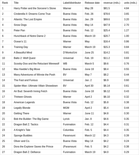 The most popular videocassette titles available for purchase during the first half of 2002 demonstrated strong consumer interest in home entertainment options.