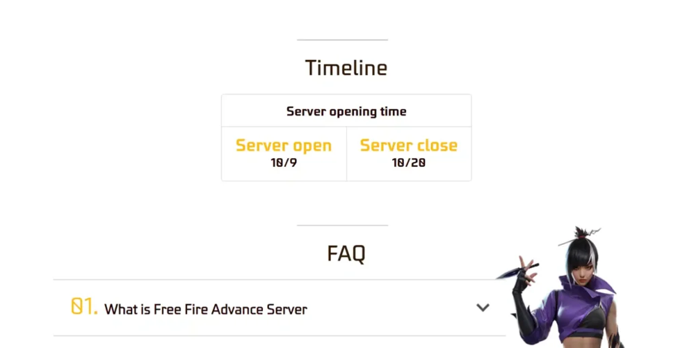 Free Fire Advance Server Details